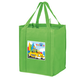 One of our most popular bags, this combination wine/grocery bag is a great multipurpose product. It can be used when grocery shopping and is also the perfect bag for a picnic. Made of strong 110 GSM non woven polypropylene, this bag features 4 interior bottle holders and 2 interior pockets. It also includes a poly board bottom insert for added strength. Show off your logo using our Color Evolution 4 color process heat transfer imprint method.